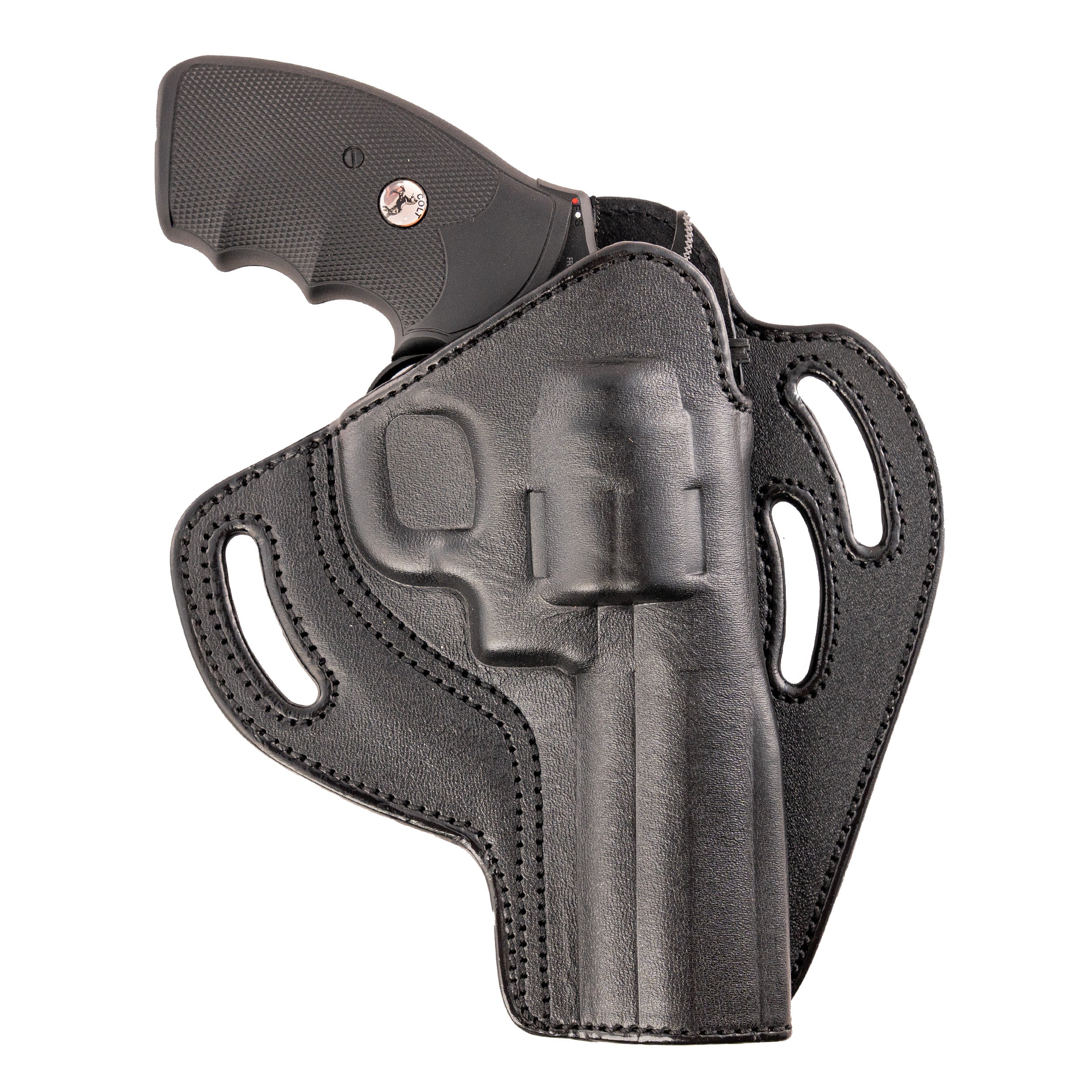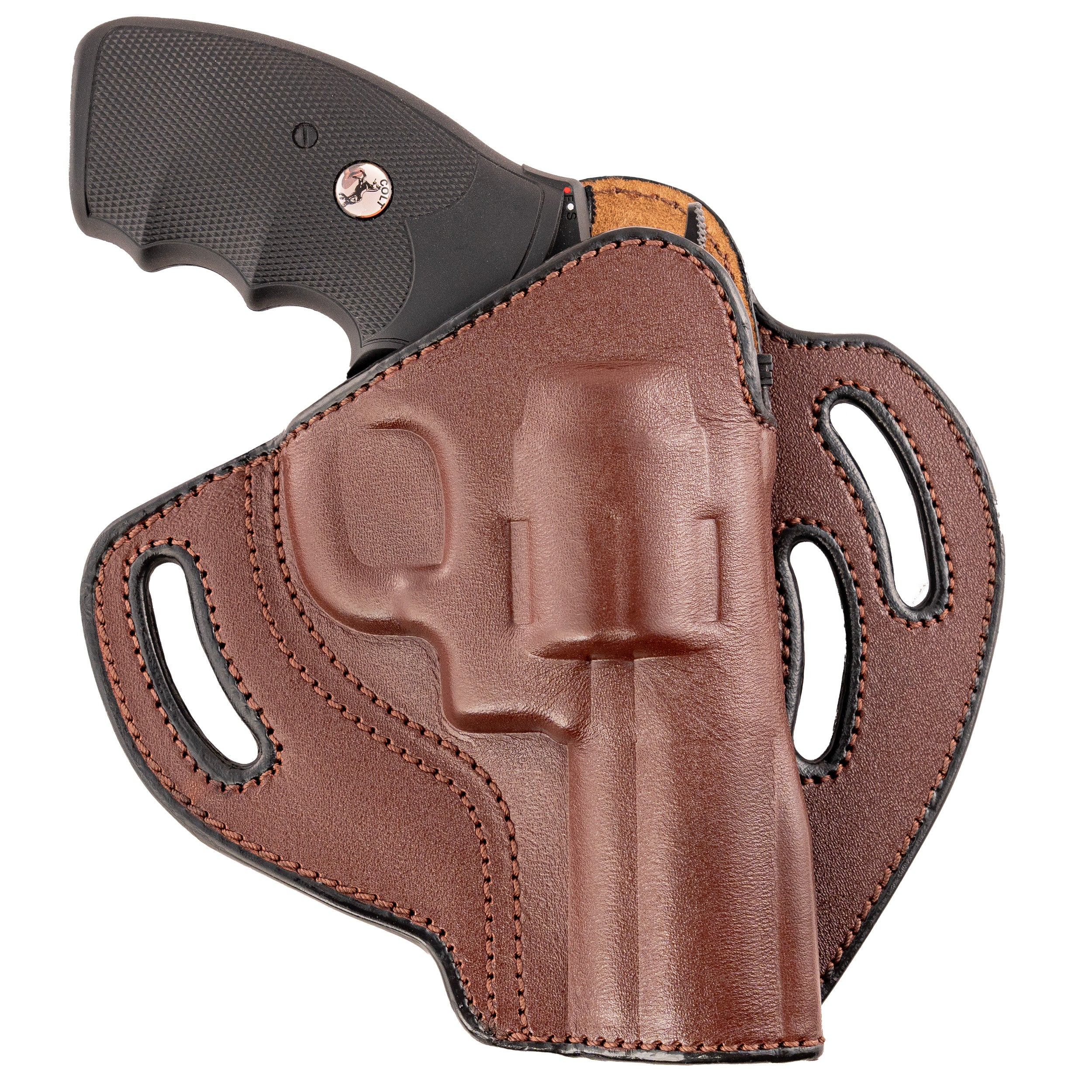 Constructed from full-grain genuine leather, this holster is molded to your firearm for a perfect fit and secure retention—without bulky straps or snaps slowing your draw. Its open-top design allows quick, smooth access while maintaining excellent retention for your revolver.